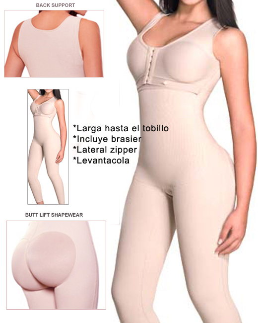 Descripción: Tela Anti-Bacterial. Faja control powernet recomendada para despues de la cirugia. Faja modeladora de compresión fuerte, controla la cintura, abdomen, espalda, cadera entre piernas, y vientre bajo. Resalta el busto. Recomendado: Uso diario., post-lipo, post-parto, tummy tuck, faja modeladora. Largo hasta el tobillo, levanta la cola. Zipper lateral, con ganchos adentro para ajustar. Reduce y mantiene la firmeza en su adbomen. Corrije y ayuda su postura. Realza los gluteos, busto, y moldea la silueta de su cuerpo. Muchas mujeres lo usan diaramente para tonificar y reducir cm's de su cintura, caderas y piernas mientras en uso. Abertura entre las piernas para su convenencia. |