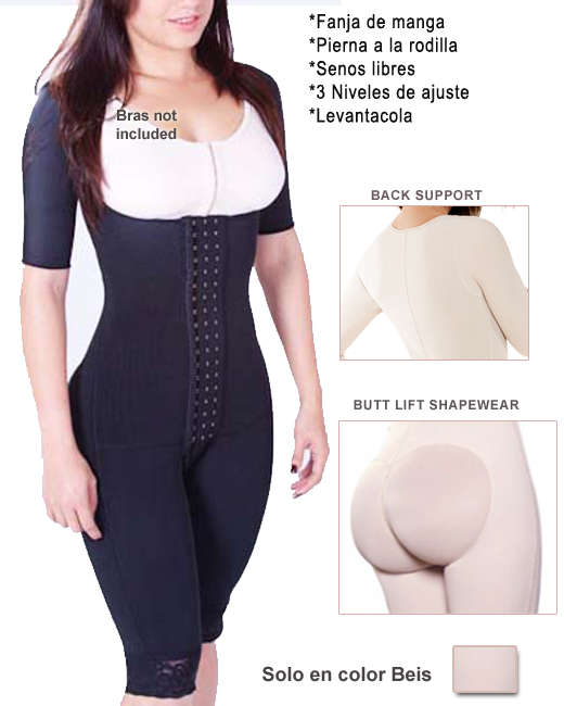 Description: Anti-Bacterial Fabric. Postsurgical Girdles made with strong Powernet for using just after a surgical intervention. Soft and strong materials are used to give to the user a high degree of comfort. A highly-resistant weave, for better body compression. Helps-disinflammation process, facilitates the skin to adhere to the muscular tissue and external sewing for easy re-fit. Girdle knee with sleeves, special for people who practice various surgeries at once: buttocks, arms, thighs and abdomen. Many women wear this garment on a daily basis to tone and instantly reduce cm's on their waist, hips and legs while in use. Open Crotch convenient for bathroom use. . |