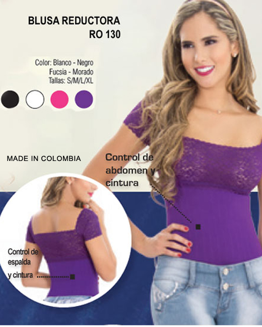 Description: Blouse reducing slimming the waist to give an attractive silhouette, fine lace short sleeves, designed in a way very sexy and elegant. Lace in the front for a touch of fashion. Made of a soft material that gives movement to the garment, fits at the waist, it controls the abdomen and the back, it is ideal for use in any occasion. Made in Colombian |