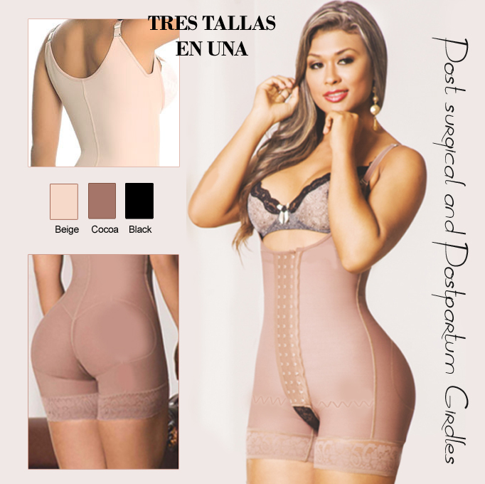 Description: Braless High Back adjustable straps compression garment. Recommended for post surgical procedures. 3 Levels of Adjustment. Eliminates liquids due to the high compression and accelerates the swelling to go down. Shaping Lipo Girdle. Super Extra Compression that controls the waist, abdomen and hips. Helps correct the Back posture and lower abdomen. Lifts the busts. Manufactured with anti-bacterial textile of high quality and maximum powernet compression that permits the body to transpire and gradually massage the skin to help prevent cellulites. Colors: Beige - Black - Cocoa |